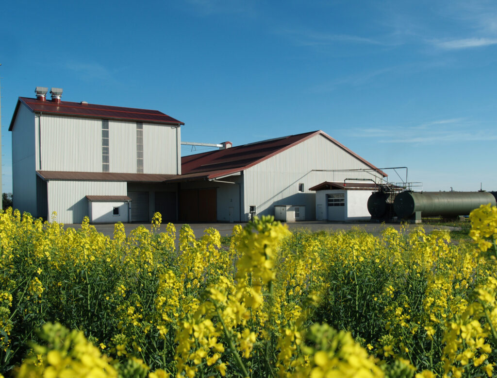2003: Bau einer Trocknungsanlage mit Lagerhallen sowie einer Rapspresse am neuen Standort Irlach
